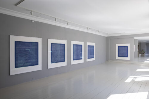 From one to many, many to many, and between two takes off where the artist’s last exhibition in the gallery ended in 2020. Here, Fleckner presented the works Woodbeds, brimming, a series of smaller woodcuts based on geometry. In From one to many, many to many, and between two Fleckner exhibits seven new works based on these, but re-performed in a format that takes the series to completely new places.