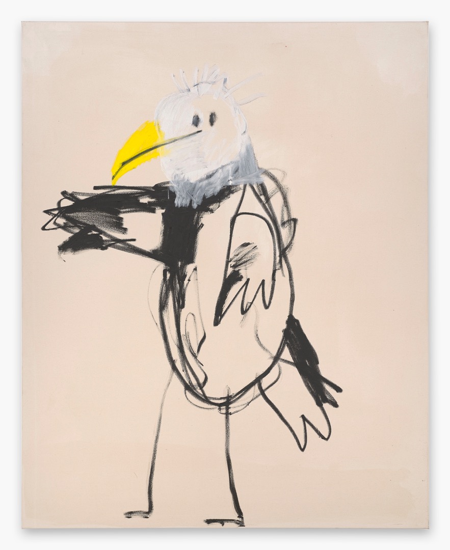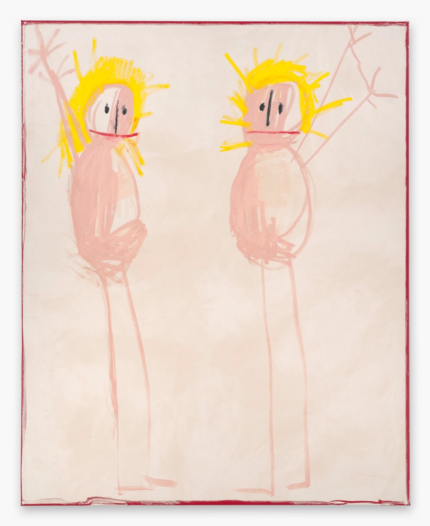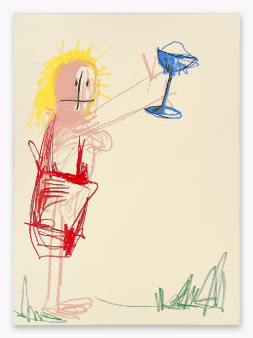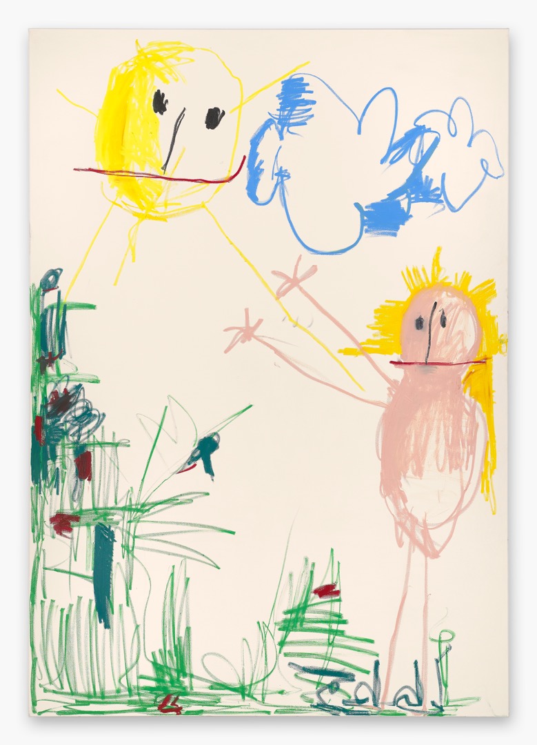At a first glance, Fischer’s works appear to be created in a kindergarten. Fischer refuses, charmingly, to live up to rules of perspective or correctly rendered proportionality. What we see are engagement and emotional qualities hard to put into words. The works are underpinned by spontaneous abstraction, recalling Michael Krebber’s unfinished aesthetic and a kind of modern action painting. They were made with a high degree of intensity with the lines clearly marked and roughly picked out – like a child starting and stopping at high speed.