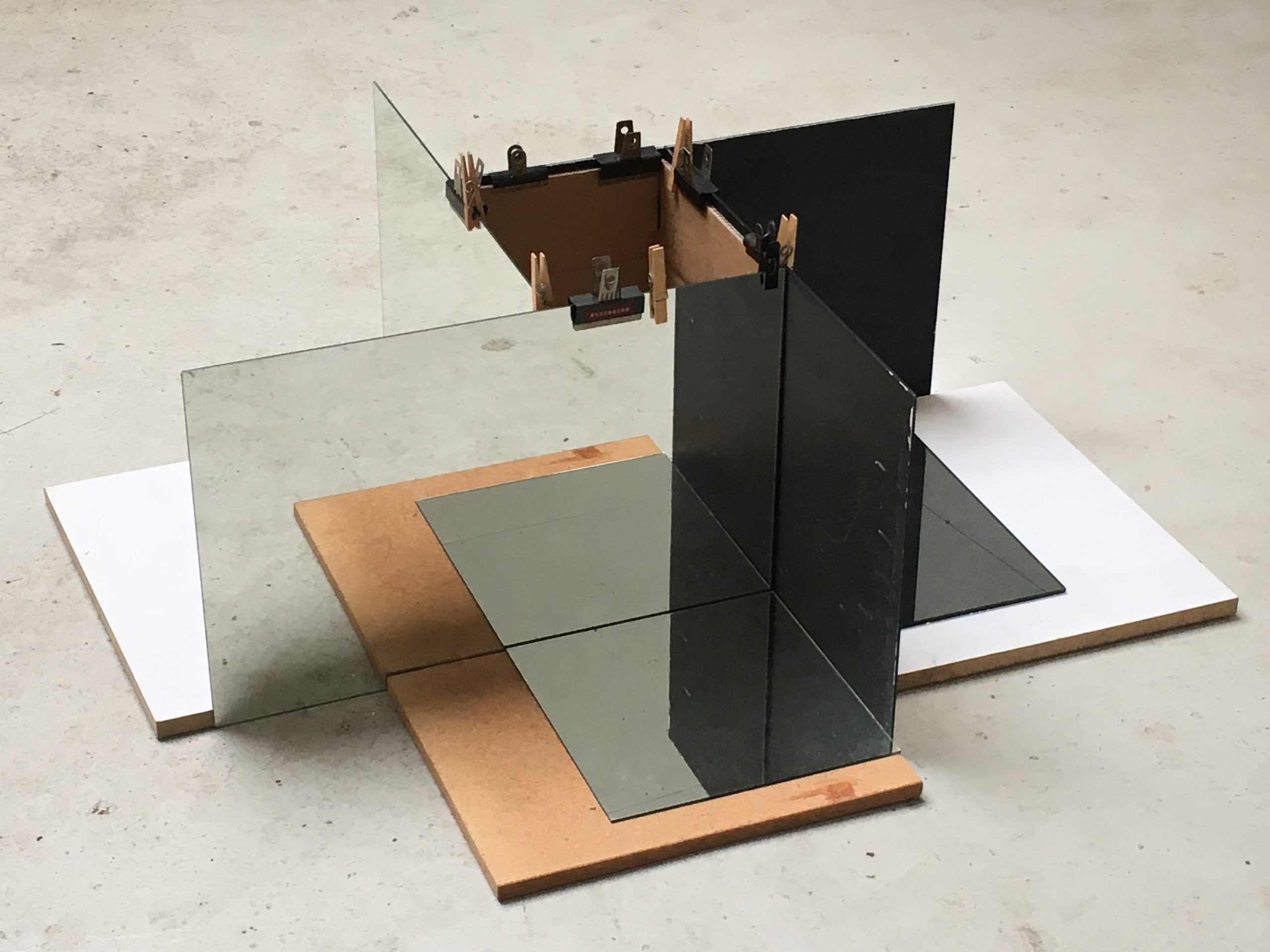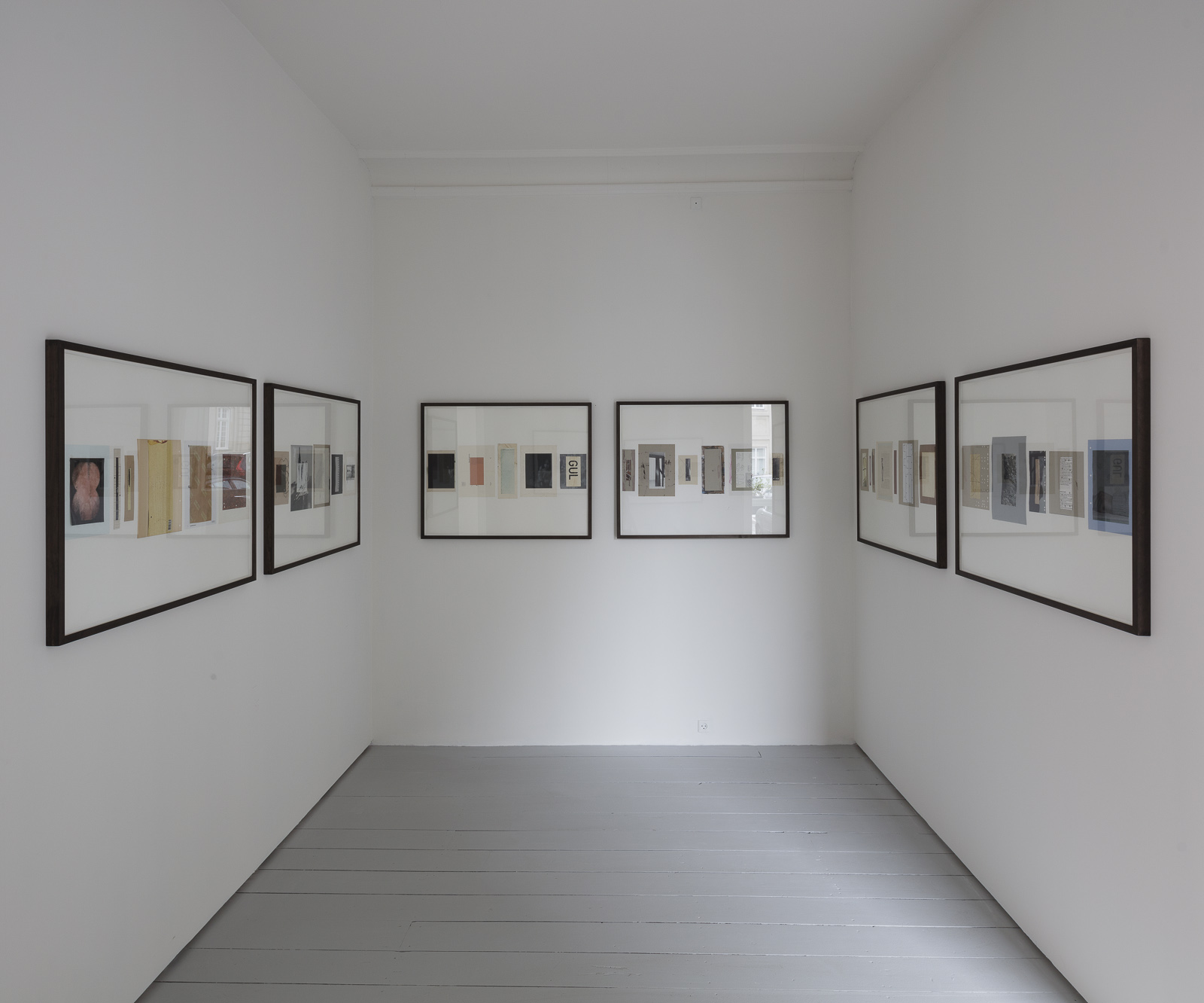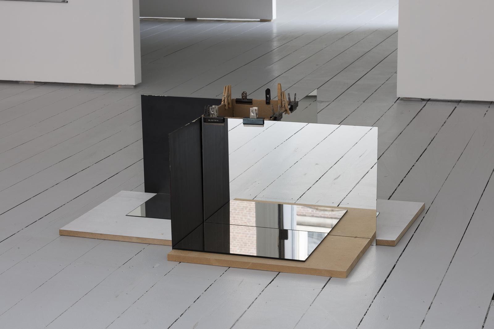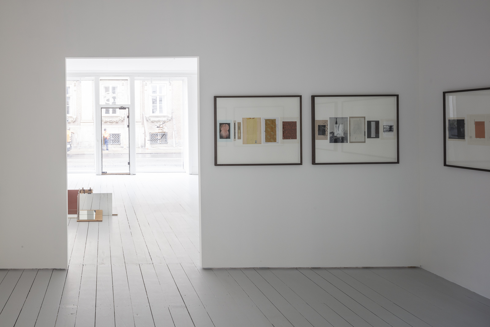 I første rum ser man værket Four Way Screen (Collector), der blandt andet består af flere sammensatte spejle. Her illustreres hvordan Reinbothe arbejder med skulpturelle arrangementer af råt materiale eller brugsgenstande og således bringer et uventet æstetisk potentiale i spil. De gensidige spejlinger danner en ny og potentiel form, der muterer i takt med betragterens rute omkring værket. Det er et møde med noget genkendeligt, der dog med simple greb har mistet sin trivielle betydning, for i stedet at åbne op for et væld af meninger. Tilsvarende sker, når man forsøger at læse vedhæftede avisudklip. I stedet indgår henholdsvis spejlene og avisudklippet nu i en konstellation, en poetisk montage, der gør os opmærksomme på vores latente og konstante behov for at skabe sammenhæng, som det mest basale perceptuelle princip.